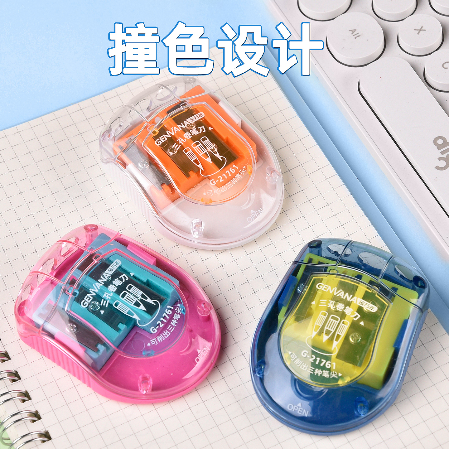 三孔大口径粗细木杆铅笔卷笔刀